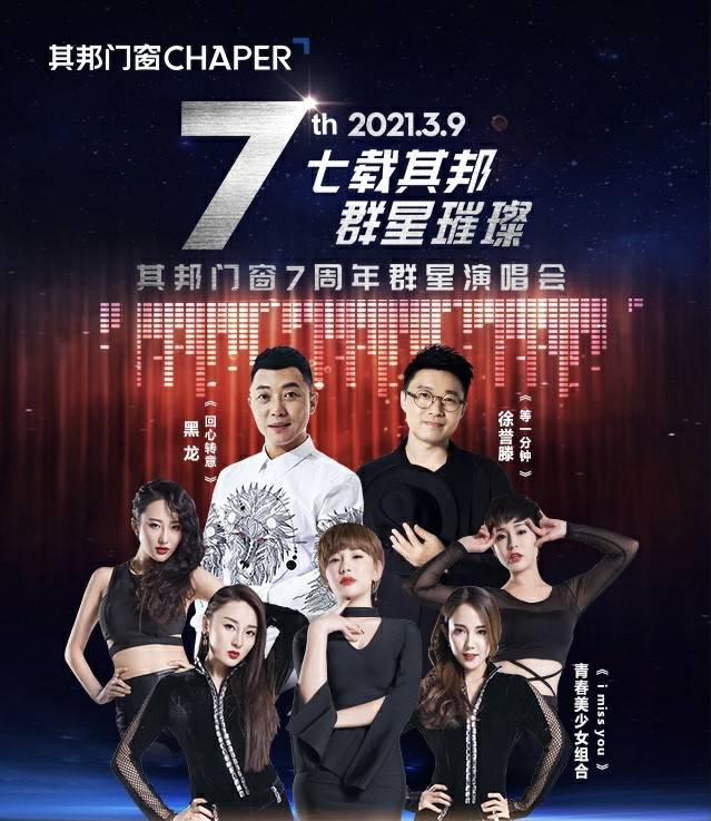 3月9日,受国内知名家居品牌——其邦门窗CHAPER的邀约,青春美少女组合参与该品牌七周年群星演唱会,现场引观众轰动,掀起当晚最大的高潮。